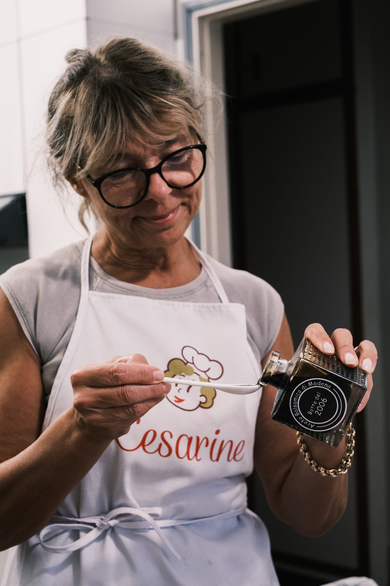 We began with a tasting. Cristina carefully offered me a spoon of aged balsamic from nearby Modena, the region famous for its balsamic vinegar. This one was bottled in 2006, thick and syrupy, with a delightful balance of sugar and acidity.