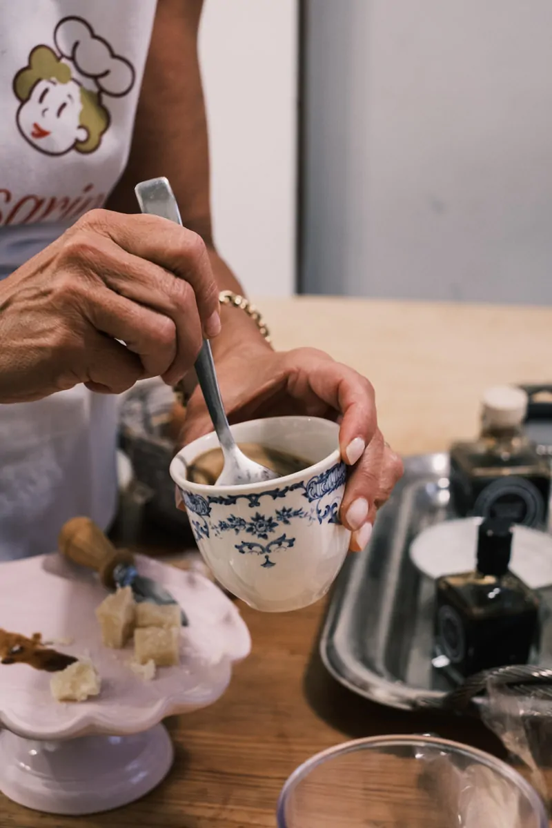 The class takes place in the living room and kitchen of her bed and breakfast, one of the first few in Bologna that she opened in 2008. The space was a mix of both modern and antique pieces that exudes a cozy and elegant charm. Old books, ornate pieces, and family photos line the shelves behind the dining table.