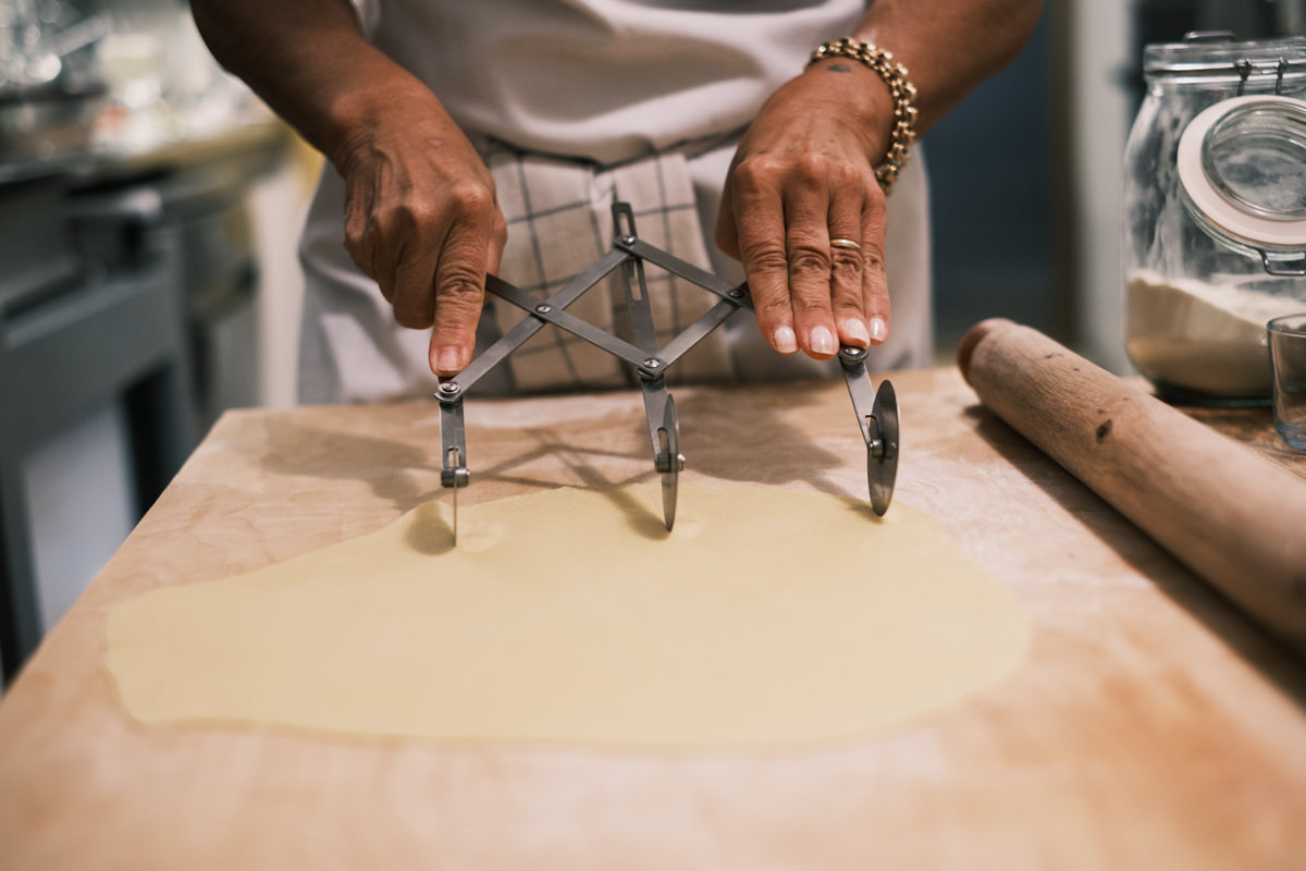 Cristina was too nice about it and used a 3 wheel pasta cutter to make the most of my sheet for the tortelloni.