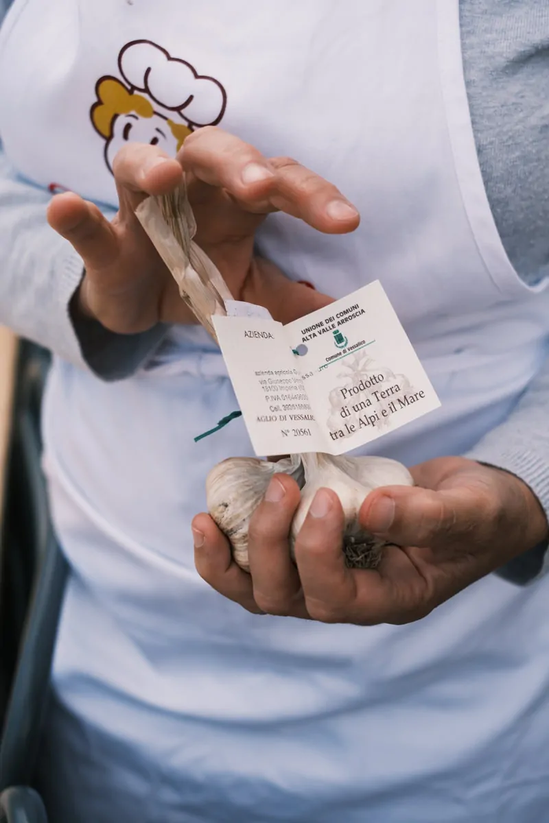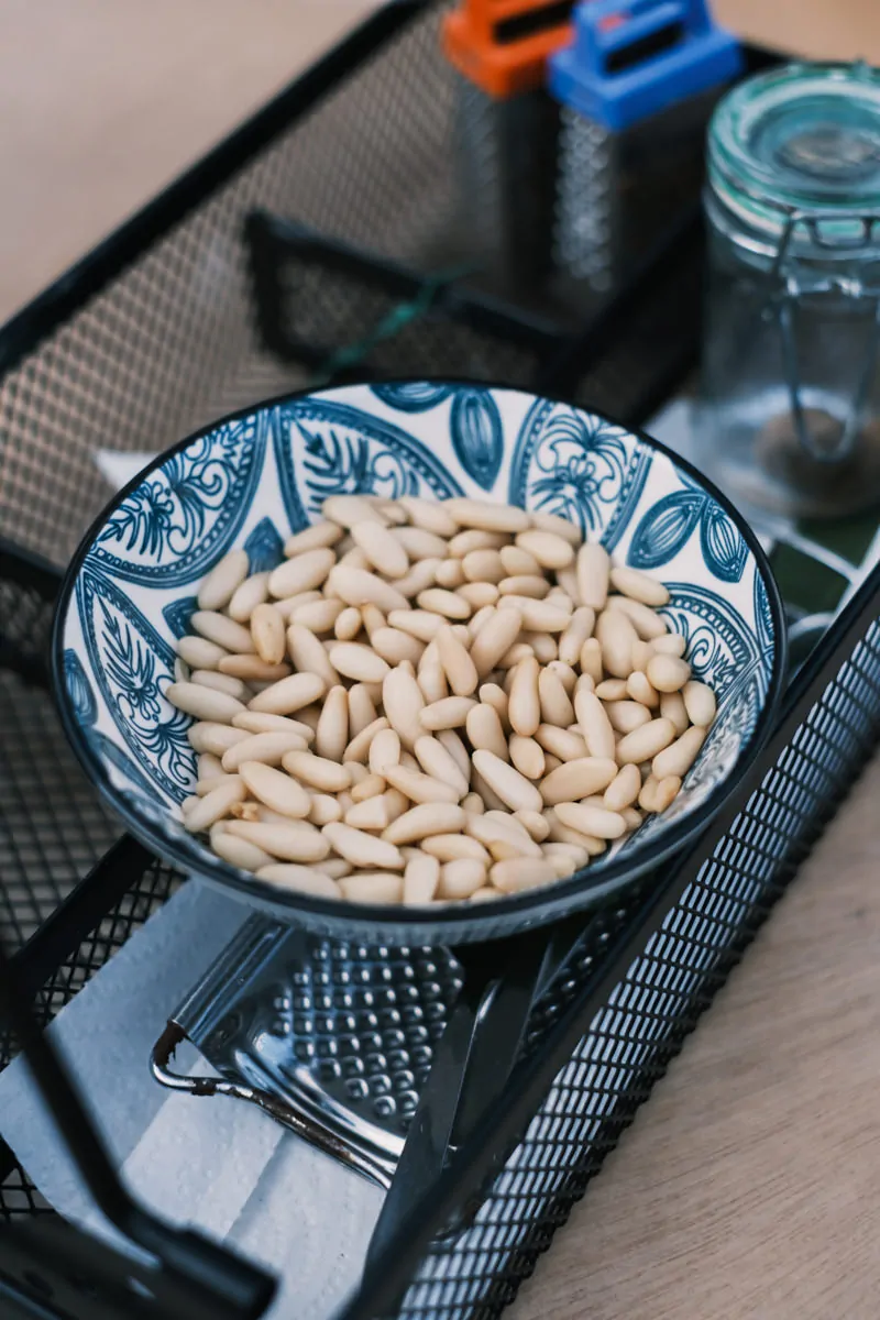 For her pesto, Barbara uses highly prized Ligurian pine nuts and Aglio (garlic) di Vessalico, both from the local coastal area, as well as fresh basil from her garden. It’s finished with sea salt, extra virgin olive oil, also sourced locally, and a mix of parmigiano reggiano and pecorino cheese.