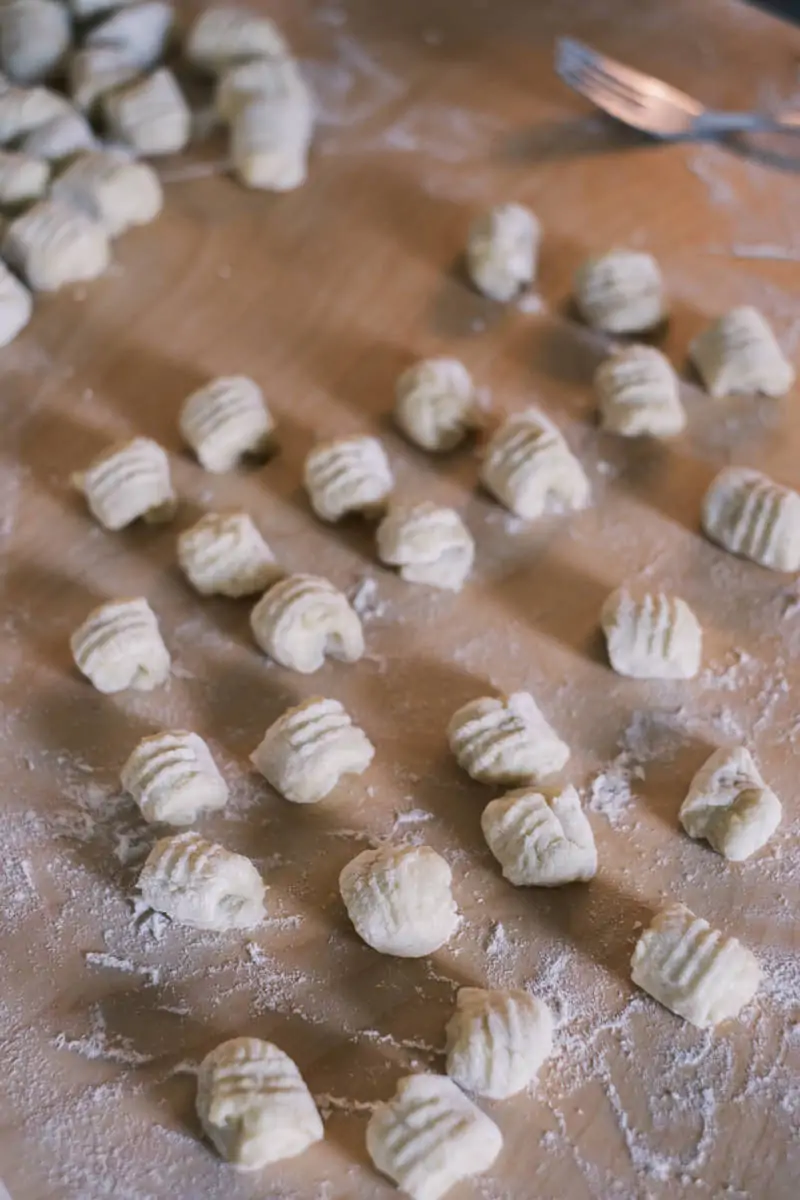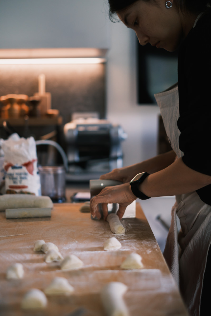 It was when we started to roll the dough out into a long stick and cut them into bite-sized pieces that we could really feel the fluffy and airy texture. Different enough from my attempts in the past and night and day compared with store bought gnocchi.